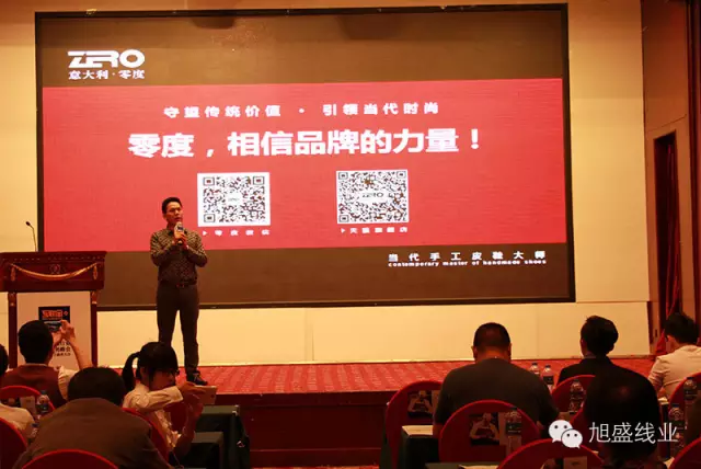在第六届鞋服行业电子商务峰会上,意大利零度大中华区CEO涂春荣就零度皮鞋在品牌力量上的坚信进行阐述。