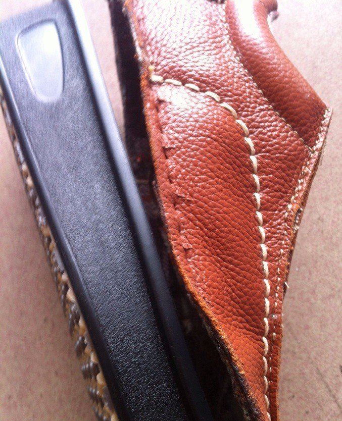 通过缝马克线将鞋面和鞋底缝合在一起的鞋子,由于其较普通粘胶鞋做工精细且质量好,韧度极高,而受到人们的青睐。现有的制鞋工艺中,虽然说缝马克线线在可以直接通过缝马克线的机器缝合,且此缝製方式的缝製效率高,但是鞋子的某些特殊部位却无法通过此类机器来缝合,所以这些部会就需要手工一针一针来缝製,而由于马克线较粗,直接採用缝针手工缝製时,马克线受到的阻力较大,所以缝製起来需要好费许多时间,但是出来的成品绝对是最坚固的。